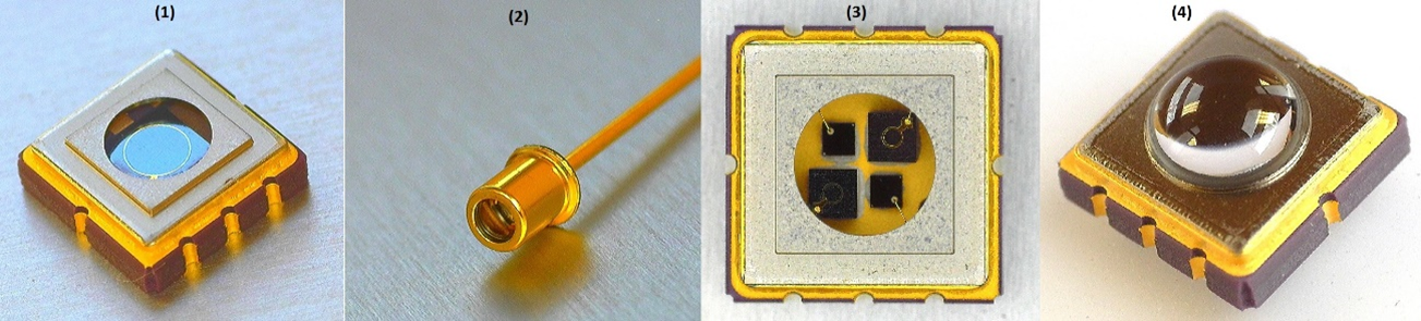 InGaAsフォトダイオードを、(1)フラットレンズATLASヘルメチックSMDパッケージ、(2)ピグテールTO-can、(3)Siフォトダイオードと組み合わせて250nmから2600nmの検出ができるもの、および(4)ドームレンズATLASパッケージに搭載したものがあります。