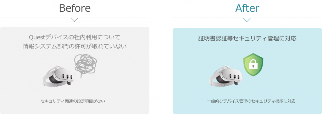 Meta Quest for Businessを活用し、企業・学校・官公庁など幅広いお客様でより業務に直結したMeta Questの利用を促進していきます。