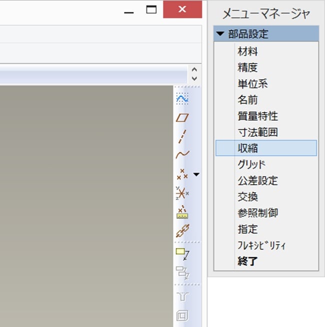 Pro/ENGINEER Wildfire 4.0まで、「収縮」コマンドは「編集」>「設定」で表示されるメニューマネージャーにありました。Creo Elements/Pro 5.0 (Wildfire 5.0)以降のリリースではどこにいったのでしょうか。