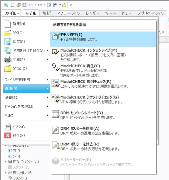 Creo Elements/Proではファイル>プロパティ