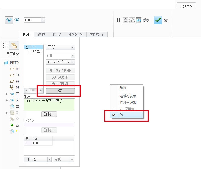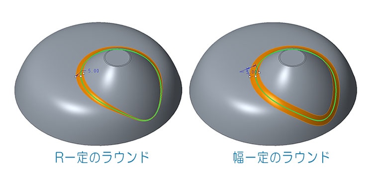 Creo 3.0から弦ラウンド(Chordal Round)が追加されました。弦ラウンドは、幅一定のラウンドです。意匠面、意匠形状ではよく使用されており、新しく追加されたこの機能は、プロダクトデザイナーの方々には大変好評です。