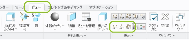 Creo 1.0以降のリリースでは、デフォルトでデータム軸、データム点、データム平面のタグが非表示になりました。