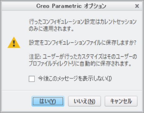 [はい]で既存の環境設定ファイルに保存し、[いいえ]で環境設定ファイルに保存しません。どちらを選んでもデータムタグの表示は設定されます。