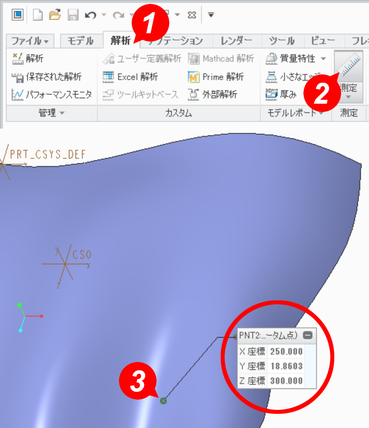 Pro/E、Creo、Windchill、Creoでデータム点の座標値を知る方法をご紹介。