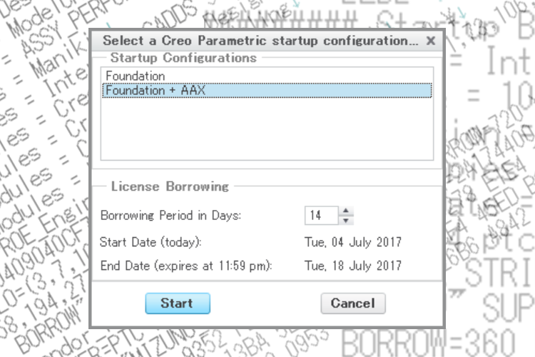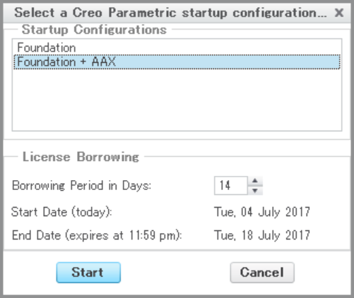 3. 最後に「Start」ボタンをクリックするとライセンスを借用してPro/EまたはCreoが起動します。