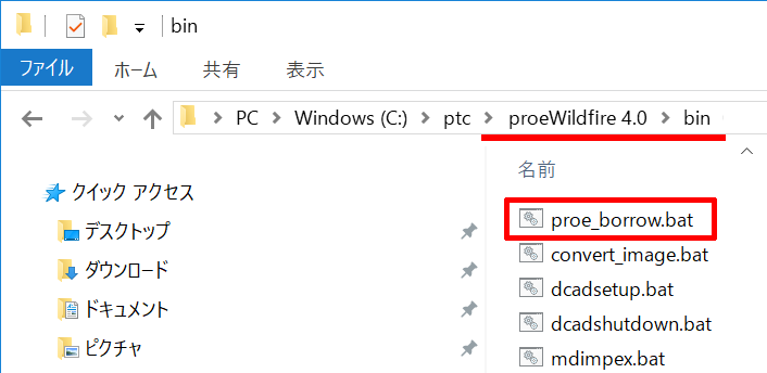 proe_borrow.bat  (Pro/ENGINEER Wildfire 2.0から5.0、Creo Elements/Pro 5.0)、