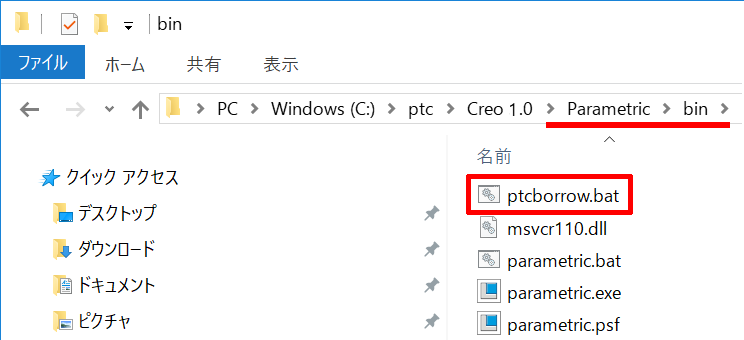 インストールディレクトリ\parametric\bin\ptcborrow.bat