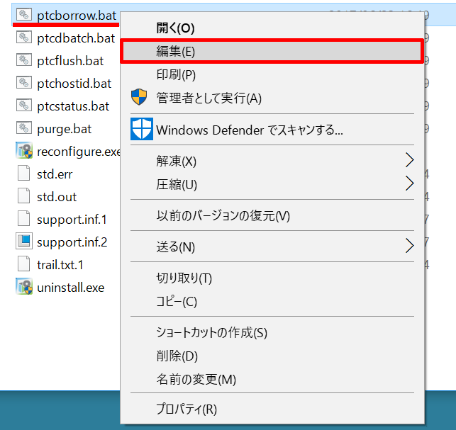 1. ライセンスの借用に使用するバッチファイルを編集します。