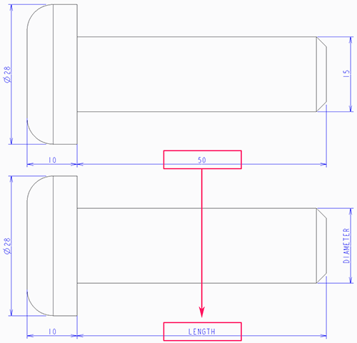Creoの図面で作成または表示した寸法は、図面寸法値の代わりに寸法名(寸法シンボル)で表示することができます。