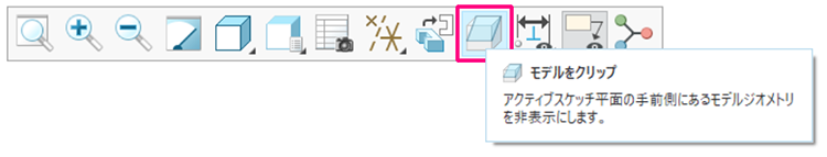モデルをクリップはCreo 4.0のスケッチャーの機能です。この機能を使用するアイコンは、スケッチャー内のグラフィックツールバーに格納されています。