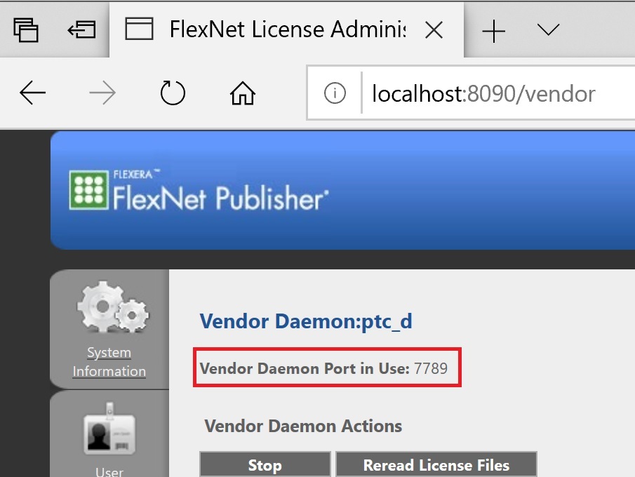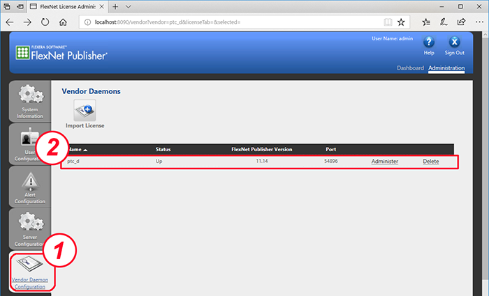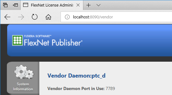 - 「Vendor daemon Configuration」タブを選択してptc_dの行を選択します。