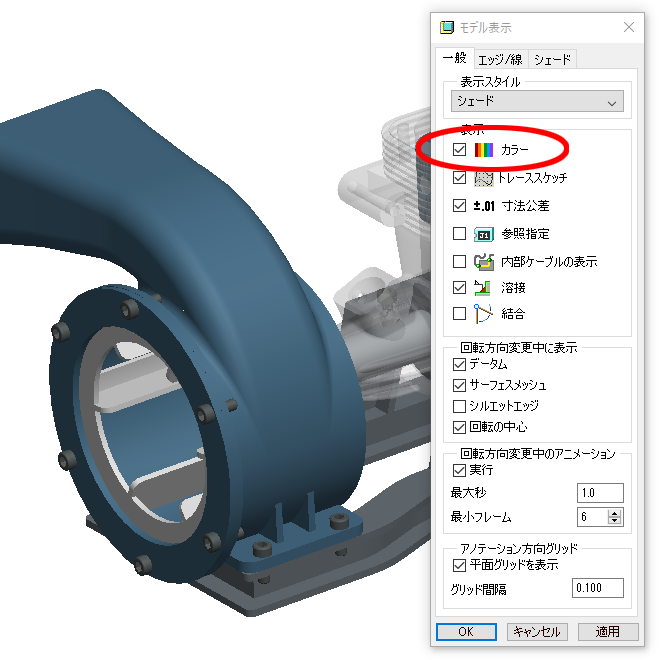 Creoでモデルサーフェスに適用されたカラーをON/OFFする方法