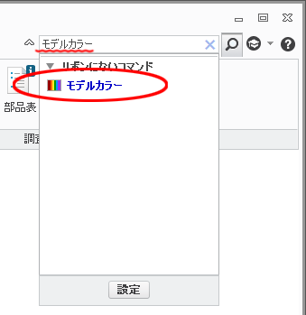 コマンドサーチでは「モデルカラー」と入力すればすぐに結果が表示されますので、こちらを利用した方が速いかもしれません。