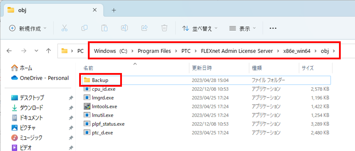 C:\Program Files\PTC\FLEXnet Admin License Server\x86e_win64\obj 作成したフォルダに、下記プログラムを移動します。