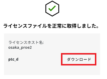 - 「ライセンスファイルの取得」をクリックします。