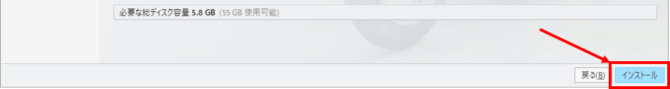 もし使用可能なライセンスにはじめから何もなければ、そのまま「OK」ボタンを押して「インストール」ボタンをクリックします。