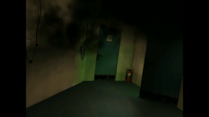 Participants can experience a series of flows from determining an evacuation route with the assistance of evacuation lighting to evacuating to the emergency exit in a VR space. Key aspects of evacuation such as the poor visibility of evacuation lighting and evacuation in a crouched posture can be experienced.