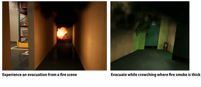 To experience important factors of the evacuation behavior from a fire scene is possible with the VR content, such as necessity to walk crouching because fire-smoke go up then accumulate near the ceiling. In addition, participant can choose the operation method of the participant’s own movement in the VR space either operation by a controller or actual walk in an experience space. In addition, Rikei would be glad to receive requests such as customization or producing new content.