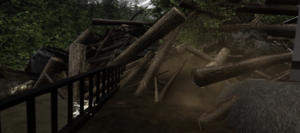 You can experience story-based simulations about how rain sounds different when you are indoor and outside, signs (advance warnings) that a landslip or mudslide will occur depending on your location, how a disaster happens, and so forth.