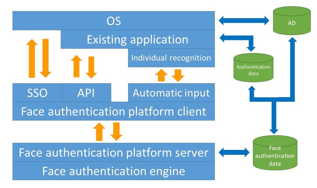 This product is a platform for two-factor authentication using face authentication technology for existing applications that perform one-factor authentication at the time of use.