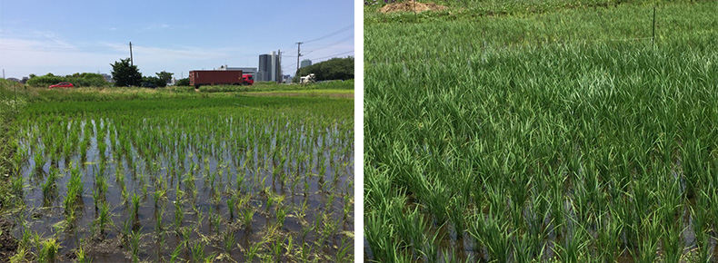 田植えから二週間後の苗の様子。しっかりと根を張っています!!