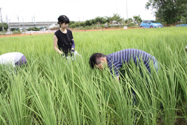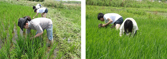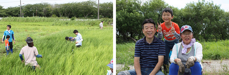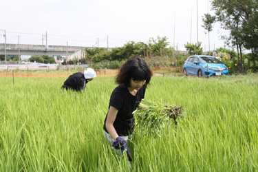 - 美味しいお米を食べるためには、この時期の草取りが大事なのよ!みんなでやればあっという間に終わるわ!熱中症になりたくないから、水分取りながらやりましょう〜