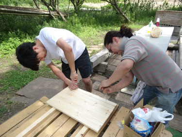 - 組み立てが終わったら、看板が腐らないように、ペンキを塗ろう!