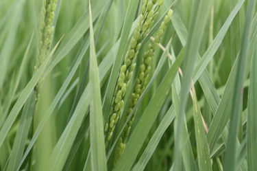 - ほら、これがこの前みんなで植えた苗だよ。すっかり大きくなってもう穂がついてるね。