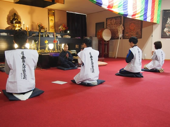 腹式呼吸や発声法、お経の練習、護身法などの練習。