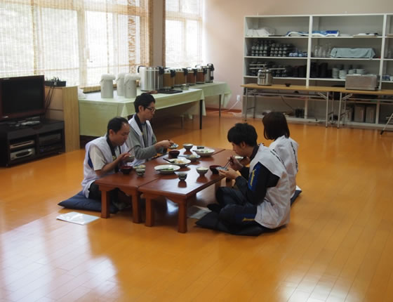 食器、お茶や料理の配膳は全員で手助けしながら行います。