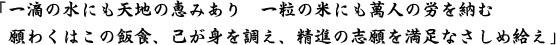 食前にすべての恵みに感謝する、以下の「食前の言葉」を唱える