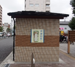この公園にも、避難所のマークがあるね。トイレに水道、人がたくさん入れるスペースがありそう。