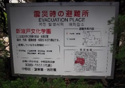 あそこにも看板があるよ。このあたりは学校が多いってことは、災害時は心強いね。
