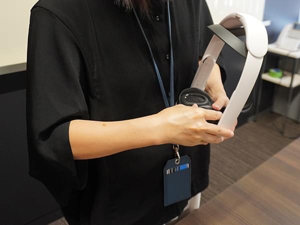 スタッフB:今日初めて試してみました。VRヘッドセットのレンズに合わせるコツをつかむのに少し手惑いましたが、位置を合わせたらあとはカチッと押し込むだけで、1分かからないくらいのお手軽さでした。