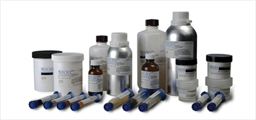 工作で使う木工用接着剤、紙を貼り付けるのに便利なスティックのり、ちょっとしたものを修理する時に重宝する瞬間接着剤、など色々ありますね。理経が取り扱う Epoxy Technology社の「機能性接着剤」は、エポキシ樹脂という化合物を使った、接着剤を塗った場所をプラスチック化させて固定する接着剤なのです。なかなか日常生活で見るシーンはないですね。みなさんが使っているデータ通信ネットワークの光ファイバーのコネクタ付けや光通信用デバイスの固定、ファイバーとフェルールの固定など、電子部品やネットワーク機器の中で幅広く使われています。