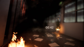 VR空間上で避難誘導灯を確認しながら、非常出口まで避難を行う一連の流れを体感できます。