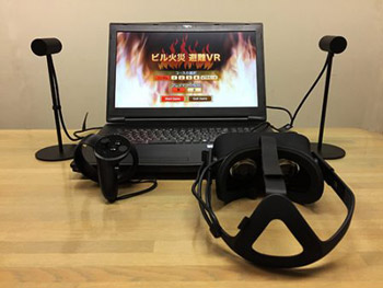 ヘッドマウントディスプレイ、コントローラ、ノートPCで構成されます。