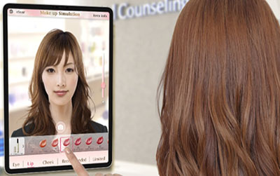メイクは使ってみて初めて、思っていた仕上がりにならない、自分の肌の色になじまないなどが分かることありますが、購入前に納得いくまで店頭でメイクを試すには時間がかかりすぎるという課題がありました。メイクシミュレーションを使うことで、目元や口元のラインアップを個別に試すだけでなく、顔全体のトータルバランスを見ながら何度でも商品を試せるため、自分に似合うパターンを短時間で選ぶことができます。毎季ごとにたくさんの種類が出る季節の新色を手軽に全種類試すということも可能になります。