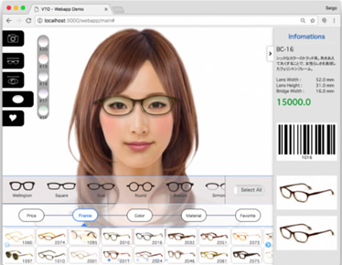 日本では視力補正やオシャレなど、さまざまな理由でメガネをかけている人が多く、街中でもよくメガネ屋さんを見かけますね。かけるメガネによって顔の印象が変わってしまうため、購入前に自分に似合うデザインをしっかりと選びたいところだと思います。しかし、試着用のメガネには度が入っていないため、鏡に映る自分の顔がはっきり見えないなど、メガネユーザーにとっては悩みの種ではないでしょうか。メガネシミュレーションを使うことで、ご自身のメガネをかけたまま、さまざまなメガネを試すことができます。また、顔の特徴を解析してお似合いのメガネを推薦するシステムを構築することも可能です。