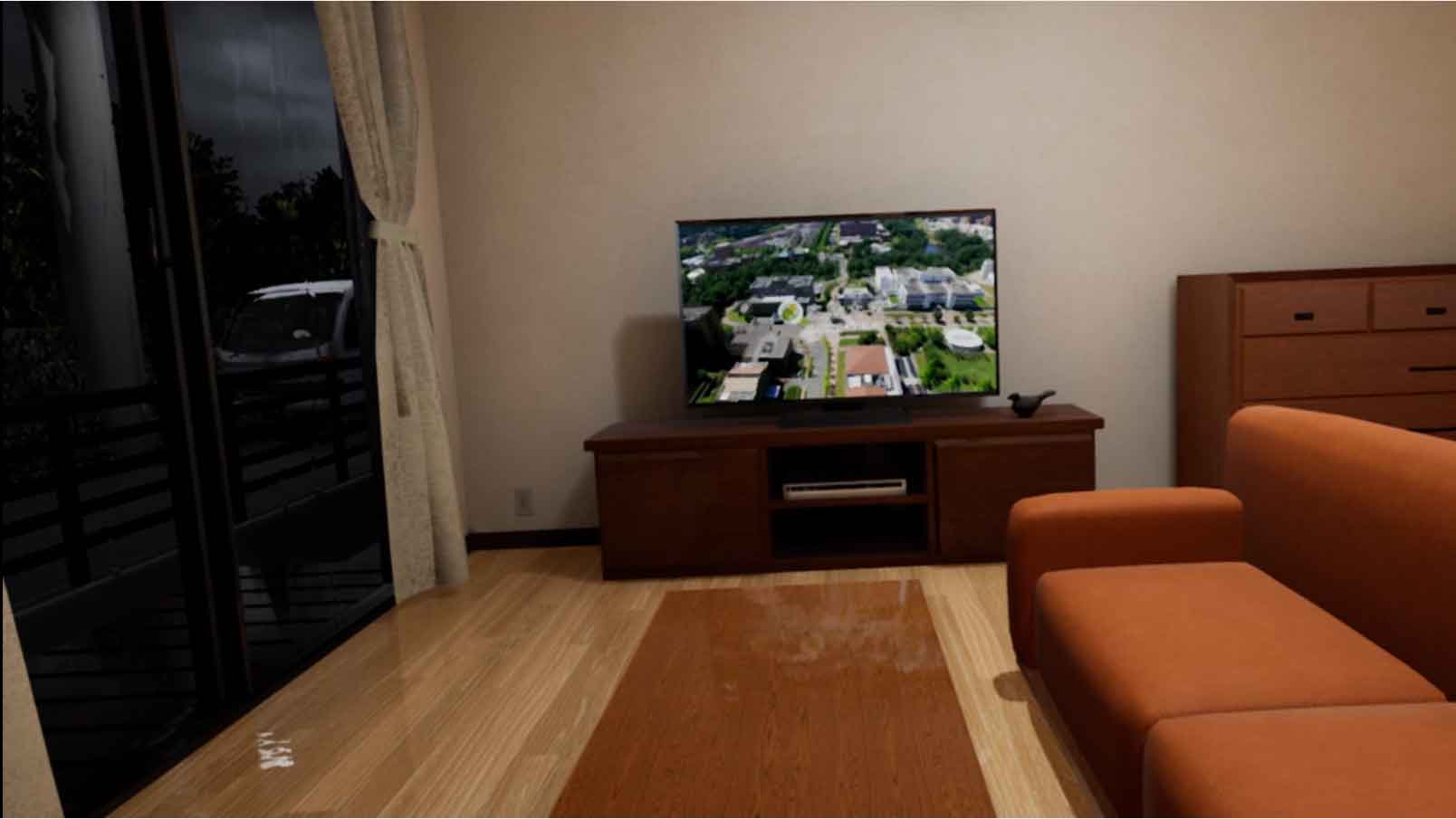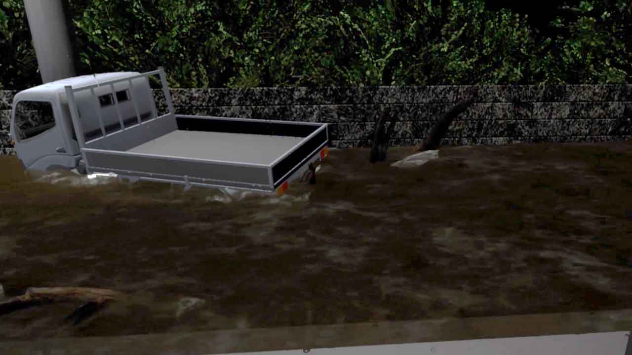 - 平成30年7月に発生した西日本豪雨の状況を基に、被災状況をVR内で再現しました。