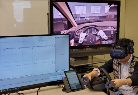 VR体験中の脳血流、皮膚電位(※2)などの生体情報を計測・分析することで、「VR空間での感性評価」や「VRの効果測定」が可能です。