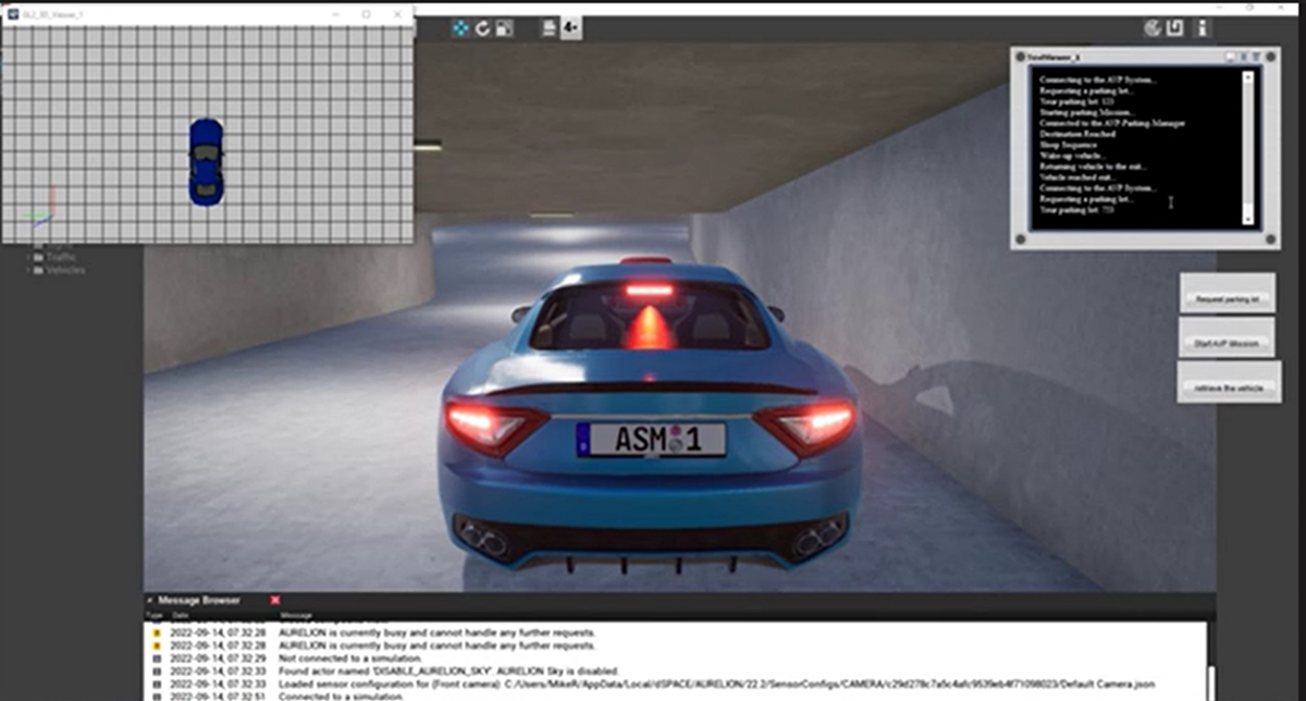 dSPACE社の自動運転のシミュレーション環境で、5G通信のネットワーク回線を作り出すアンリツの「MT8000A」を利用し、自動バレーパーキングのシミュレーションを実施。
