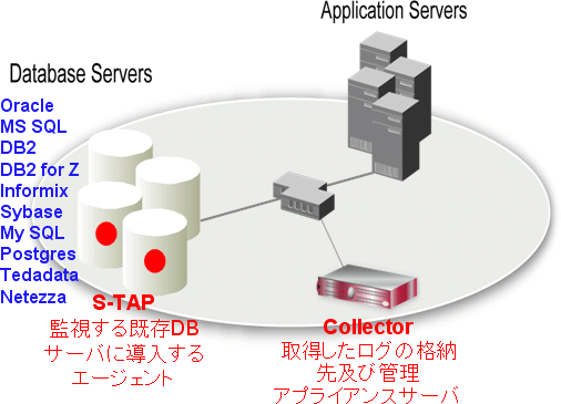 - 大規模環境における複数コレクタの集中管理 (100%DBトラフィックを捕捉;ローカルアクセス、リモートアクセス、暗号化アクセス)