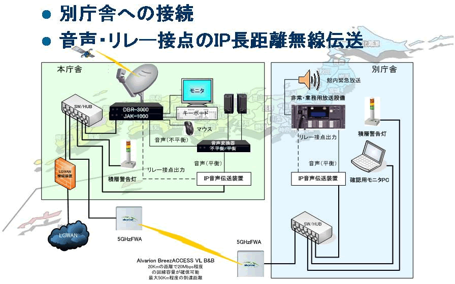 出先機関や避難所(学校や市民センター)へIPネットワークを無線延長するシステム