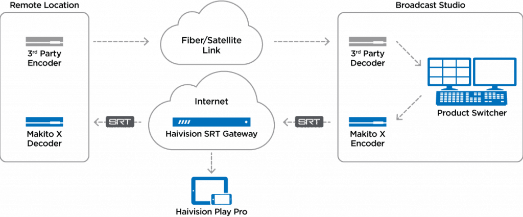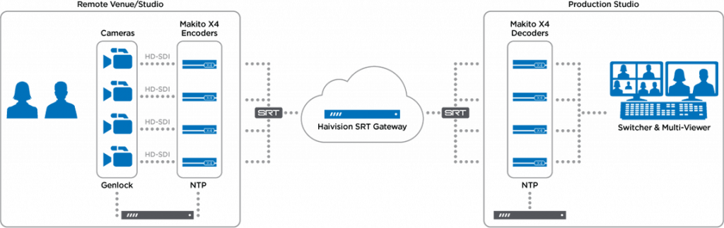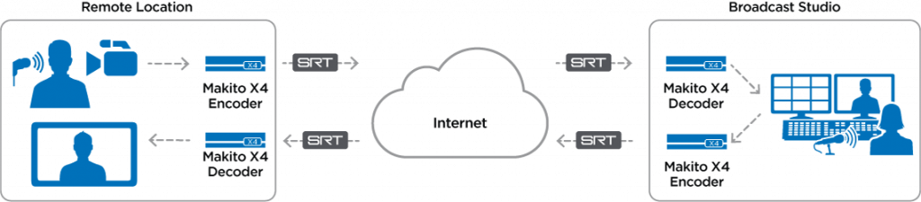 Makito X Seriesは、様々な映像伝送のワークフローに適しています。 Haivision SRT Gatewayの追加により、プロデューサーは、外出先でも、どこからでもモバイルデバイス上でライブの放送制作フィードを高信頼性のモニタリングを通じて迅速に決定できます。