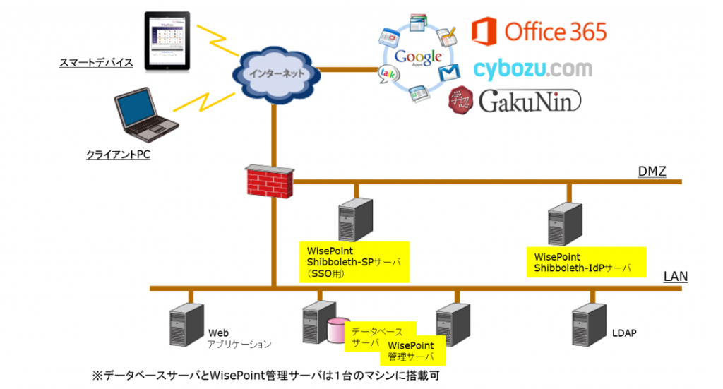 - 社内の認証基盤を利用してクラウドサービスとオンプレミス環境のWebシステムにシングルサインオンが可能