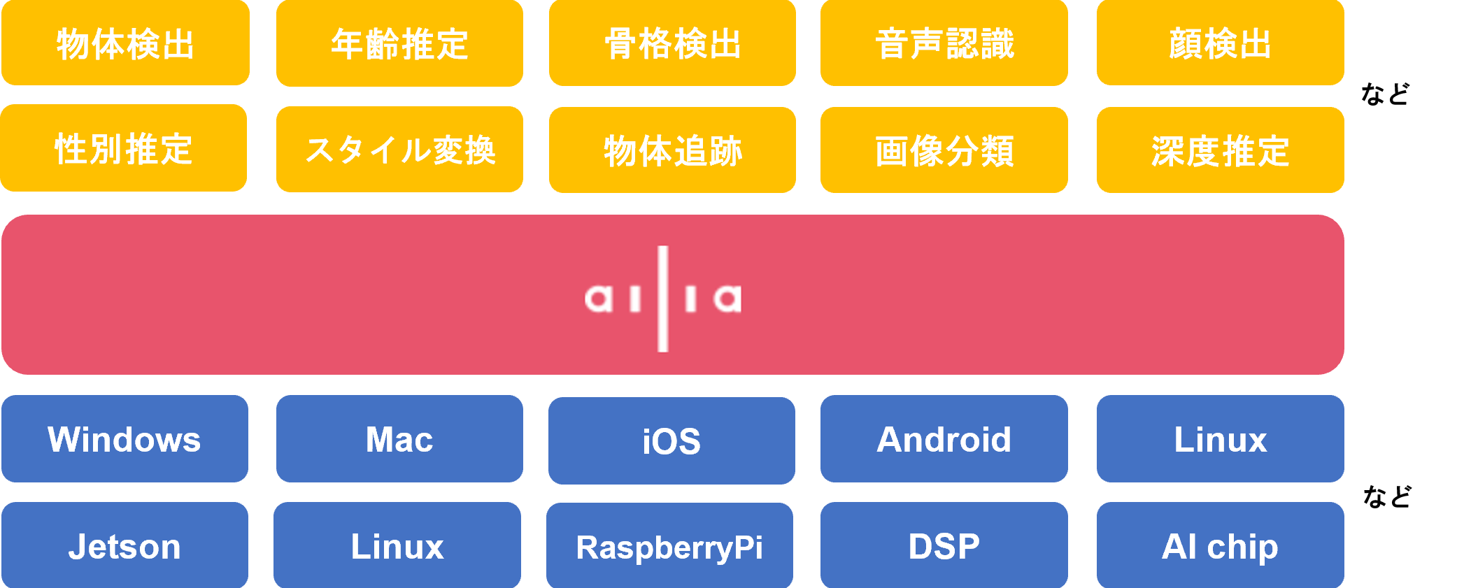顔認識や物体検出、混雑度・密集度予測、骨格推定など多種多様な学習済みのAIモデルを提供しており、AIを応用したさまざまなソリューションを短期間で開発可能。 - クロスプラットフォームでCPU/GPUを活用した高速推論を実現