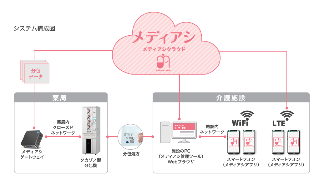 「メディアシ」は、クラウドベースのSaaS型ソリューションです。現場での手間を最小限に抑えて誤薬事故を防止します。