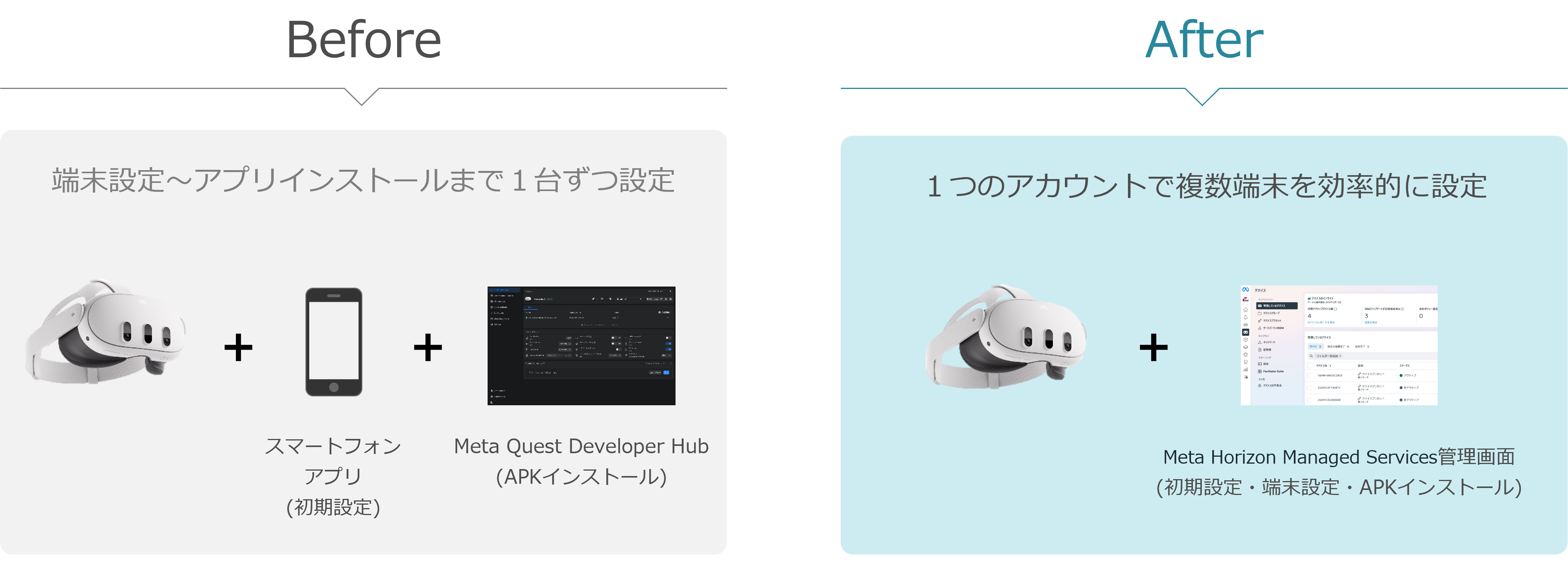 「Meta Horizon Managed Services」と連携することで、企業・教育機関・官公庁などさまざまな分野での、VR、MR 活用におけるセキュリティ向上と業務効率化を実現します。
