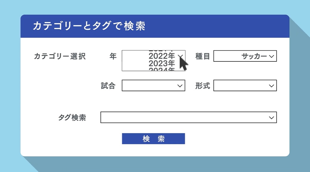 スポーツ団体:年度・リーグ・試合・撮影場所・チームごとに映像を管理